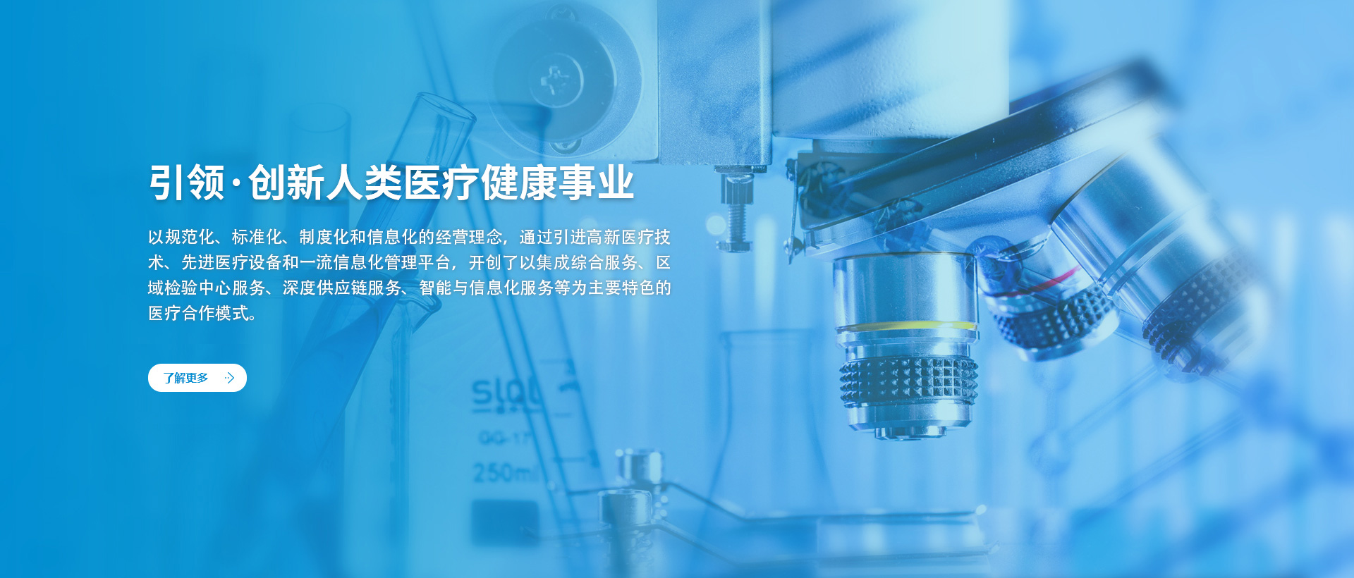 業始終以市場需求為導向,堅持走專業化綜合服務之路,通過創建“集約化服務平臺、深度供應鏈平臺、智能信息化平臺、企業融資服務平臺、金融投資管理平臺”五合一綜合平臺,推動人類醫療健康事業的發展。業始終以市場需求為導向,堅持走專業化綜合服務之路,通過創建“集約化服務平臺、深度供應鏈平臺、智...